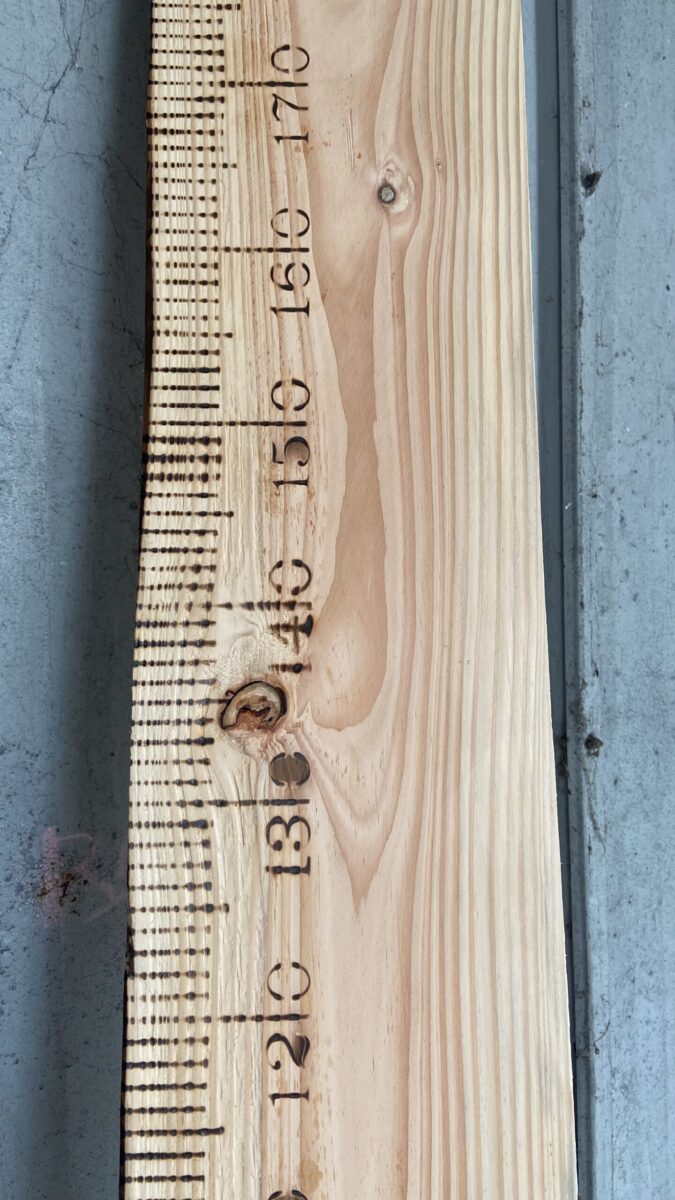 • Techniek De meetstrepen en cijfers worden in het hout gebrand.