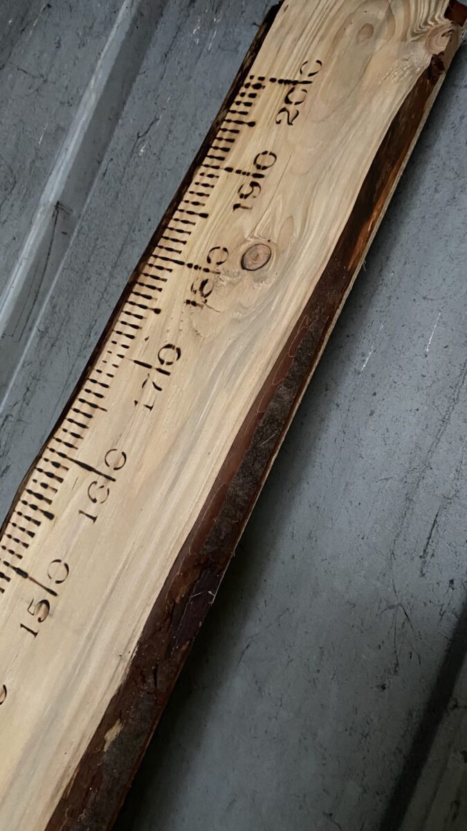 Deze ambachtelijke meetlat is handgemaakt, uniek en van Hollandse bomenbodem.