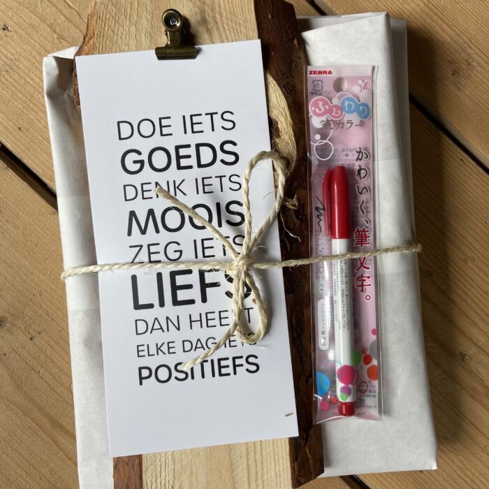 Verrassend! Vond de houten items erg leuk, zoals de kaartenhouder, het laadje en de kaarten. Het roze tasje met versiersels en de dino’s wat minder, maar wel weer goed gedacht aan de kinderen!