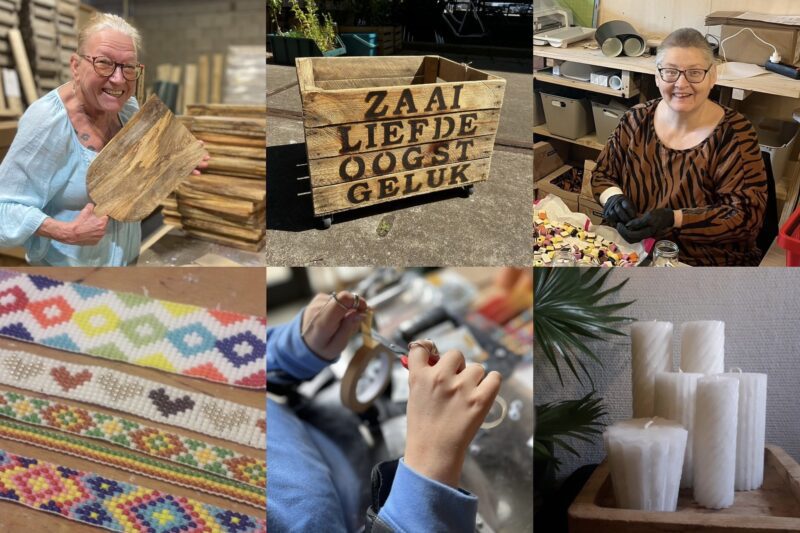 Sandra van Almirah, die nu haar dagbesteding kan laten groeien en meer makers een plek kan bieden. Straks is er heel veel ruimte – wel 650 m2! – voor meer makers en om de activiteiten uit te breiden. Bij ons werken mensen die (tijdelijk) ondersteuning nodig hebben bij het werken, onze makers. Zij doen betekenisvol werk, ontmoeten zij anderen, leren en werken op hun eigen tempo en niveau. Zo mogelijk stromen zij door naar werk of opleiding.