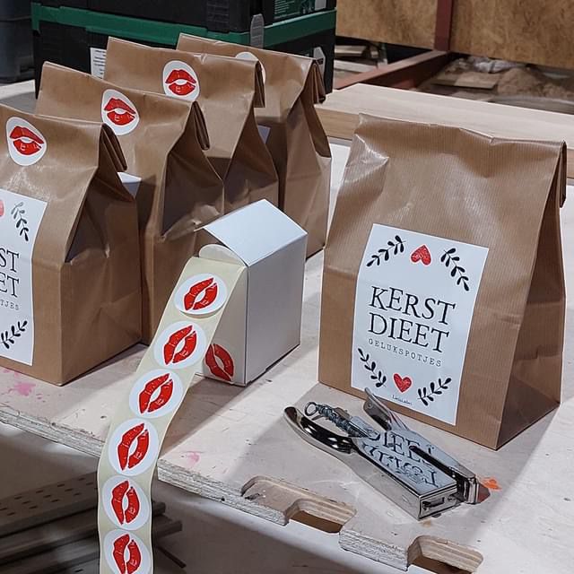 We kennen elkaar 8 jaar. Sandra runde het creatief atelier en webwinkel bij een dagbesteding in Alphen aan den Rijn, terwijl het bedrijf van Brenda maar doorgroeide. De toppers van de dagbesteding verzorgden al heel veel Liefs inpakwerk, vulden duizenden gelukspotjes en kwamen de laatste jaren tijdens de decemberdrukte ook bij ons op locatie werken.